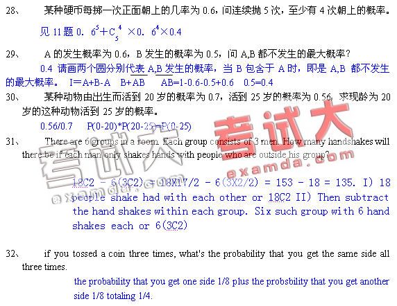 机考数学题汇编及答案-排列组合和概率二