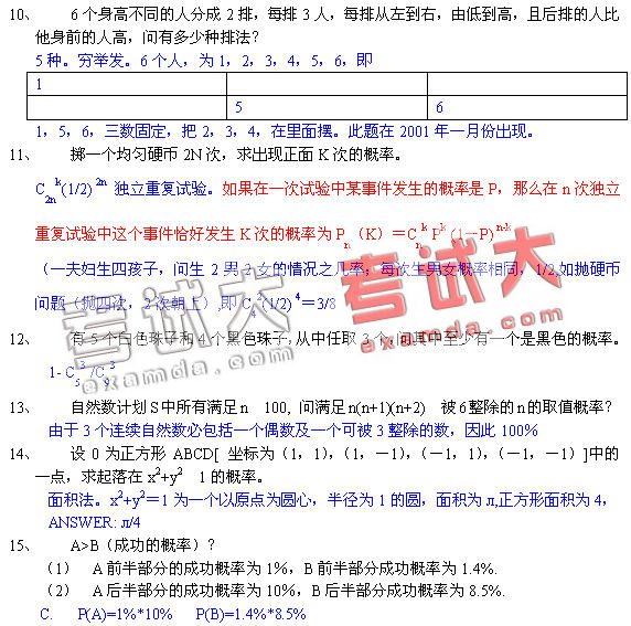 机考数学题汇编及答案-排列组合和概率一