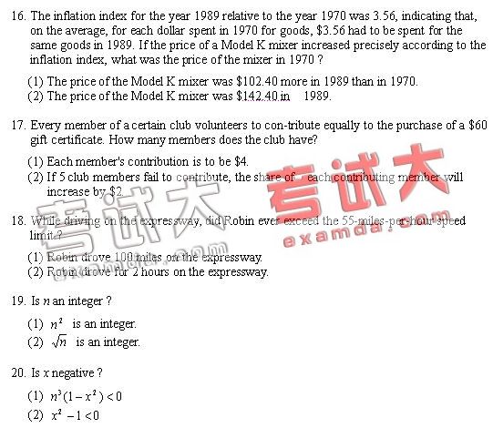 GMAT最新数学模拟试题五(2)
