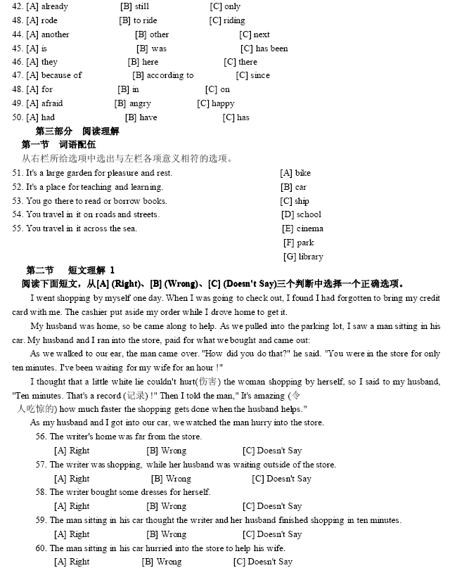 2006年9月公共英语一级全真试卷(2)