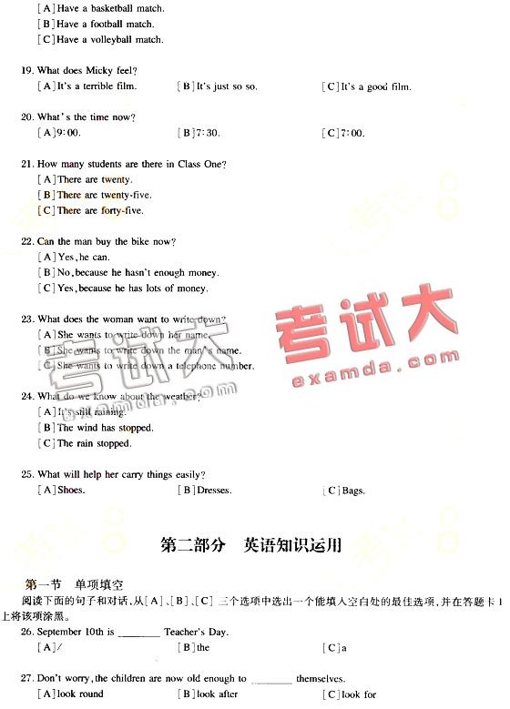 2007年公共英语(PETS)一级标准预测试卷及参考答案(3)