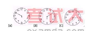 第一节:图片判断在本节中,你将听到10个句子,每句话配有A、B、C三幅图片,请选择与句子内容相符合的一幅图片,并标在试卷的相应位置。每句话后有15秒钟的停顿,以便选择答案并看下一组图片。每句话读两遍。例如,你将听到:The train goes at six fifteen. (两遍)请看选项: