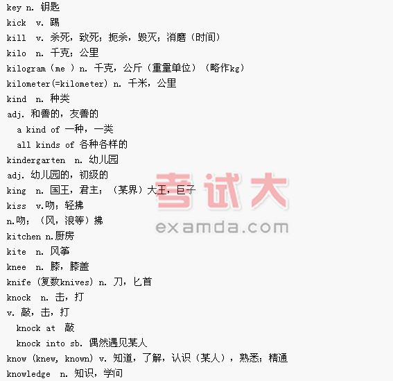PETS二级词汇大全-(K)