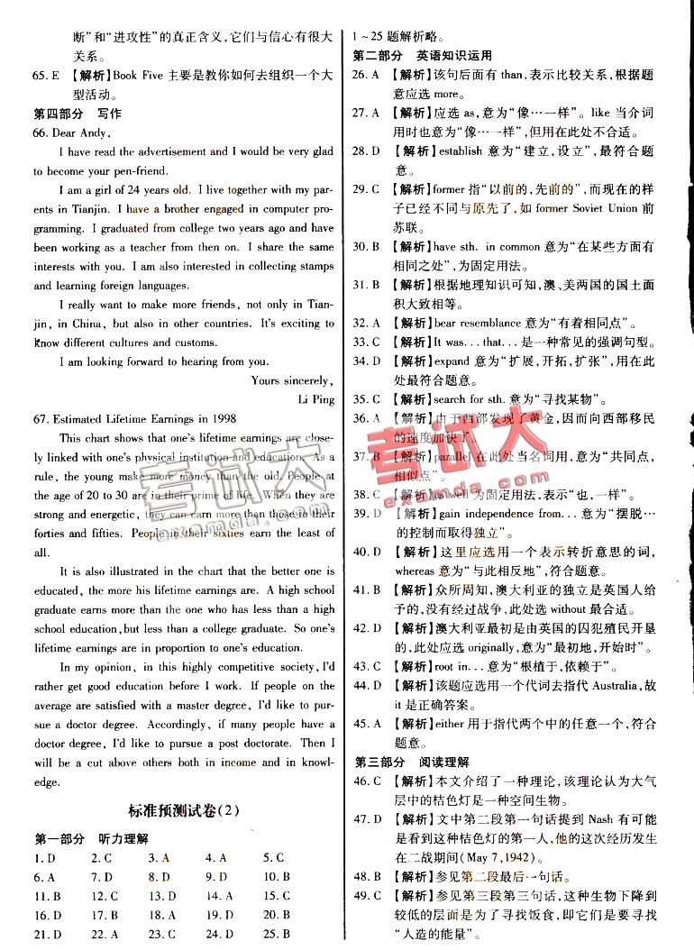 2008年公共英语(PETS)三级标准预测试卷五套答案汇总
