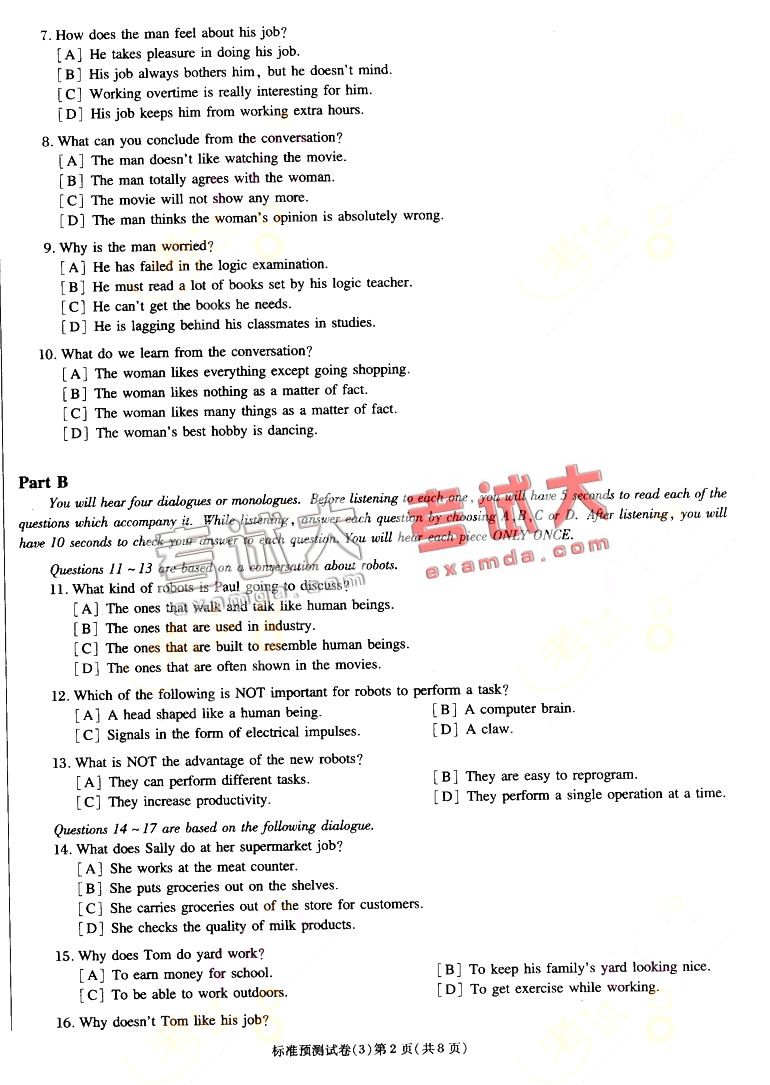 2008年公共英语(PETS)三级标准预测试卷(三)(2)