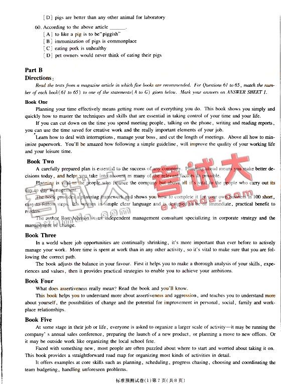 2008年公共英语(PETS)三级标准预测试卷(一)(7)