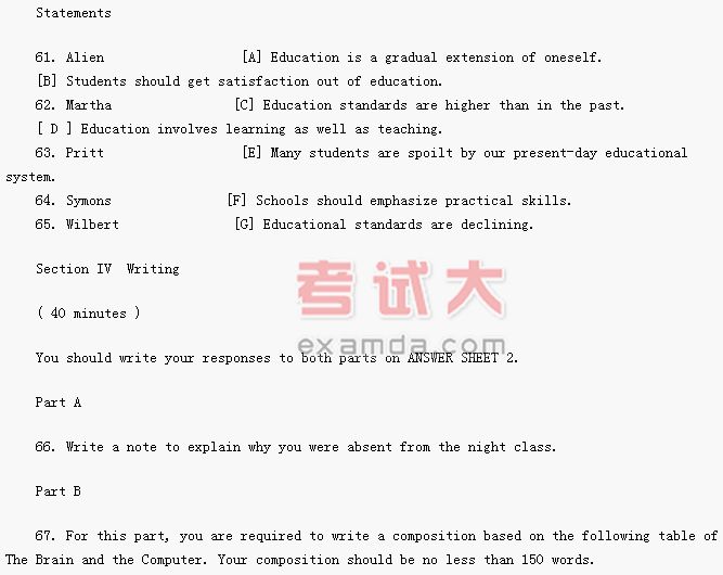Read the following article in which five people talk about their ideas of education. For questions 61 to 65, match name of each speaker to one of the statements (A to G) given below. Mark your answers on your ANSWER SHEET.
