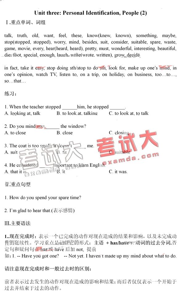 公共英语PETS一级教材同步辅导:Unit3