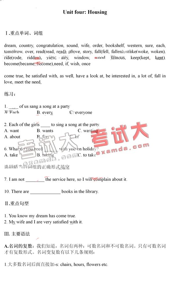 公共英语PETS一级教材同步辅导:Unit4