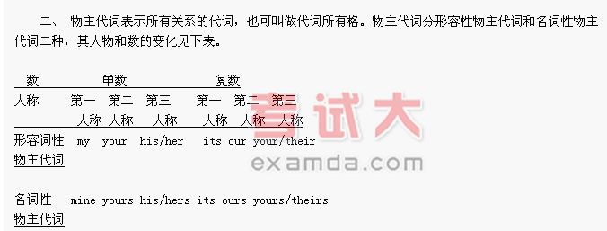 一、人称代词是表示"我"、"你"、"他"、"她"、"它"、"我们"、"你们"、"他们"的词。人称代词有人称、数和格的变化,见下表: