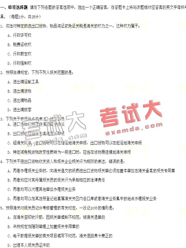 2007年报关员资格全国统一考试试卷B及答案