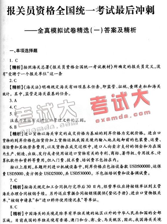 2006报关员考试最后冲刺全真模拟试题精选(1)答案