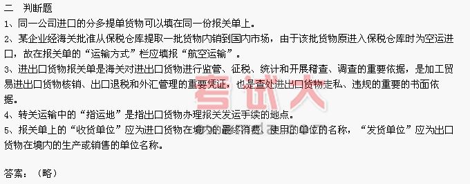 2006年报关员考试复习试题和参考答案(二)