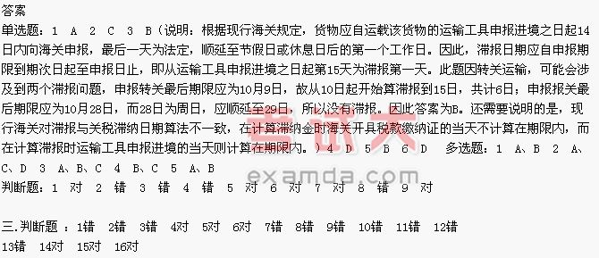 3、保定某公司从秦皇岛进口一批货物,装载货物的运输工具于2001年9月26日申报进境,货物于10月15日(周一)向秦皇岛海关申报转关;转关货物于10月15日运抵保定,该公司于10月29日(周一)向保定海关报关。问该批货物滞报多少天?