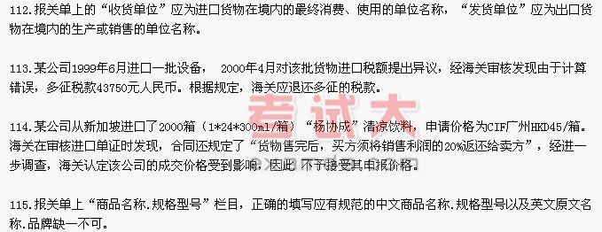 98.对属于进口付汇的货物,关在货 物放行时将出具一份盖有海关验讫章的电脑打印报关单:交进口人向税务机关申请退税。