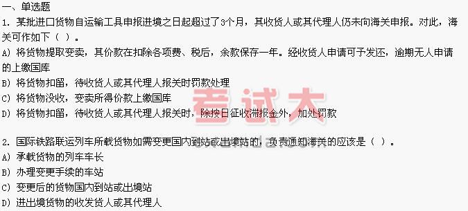 2.从下列进出境物品监管的规定中,选出正确的表述( )。