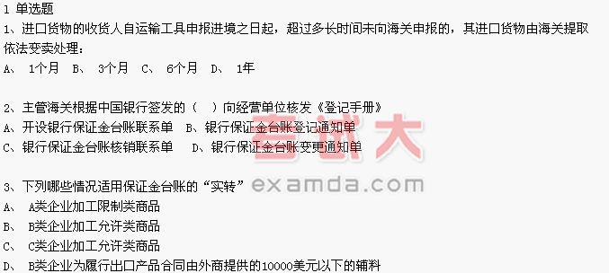 6、保税仓库经营人应于每月的前( )天定期向海关报送“收、付、存月报表”