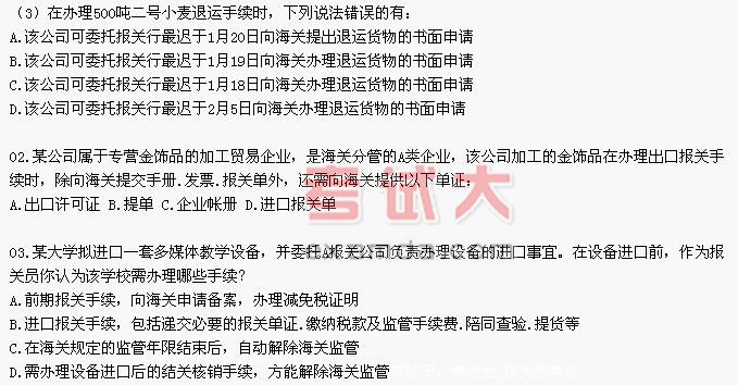 (2)报关行在向海关申报小麦进口时需向海关递交有关单据,下列说法正确的有: