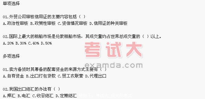 报关员考试国际贸易实务全真试题(十)