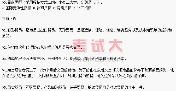 01.有形贸易,指商品进出口贸易。无形贸易,是指运输、保险、信息、咨询服务以及技术知识等的提供和接受。