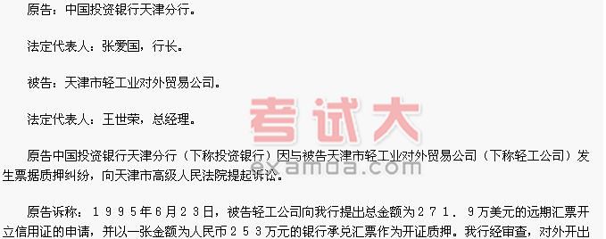 天津市高级人民法院经审理查明:1995年6月23日,被告轻工公司因代理昆山公司从澳大利亚丸红株式会社进口羊毛,向原告投资银行申请为总金额271.9万美元、付款为360天见票即付的远期汇票开立信用证,轻工公司以人民币253万元的90天远期银行承兑汇票设定质押,约定待信用证项下的单据到达后,交付与发票金额等同的360天远期银行承兑汇票给投资银行,以换取单据。在此之前,货权属于投资银行。经审查,投资银行于1995年6月23日开出“1295YQ1046”号不可撤销跟单信用证,价款:CIF厦门,议付期360天,凭受益人澳大利亚丸红株式会社提交的有效单据及发票同以投资银行为议付人的360天见票的远期汇票议付。