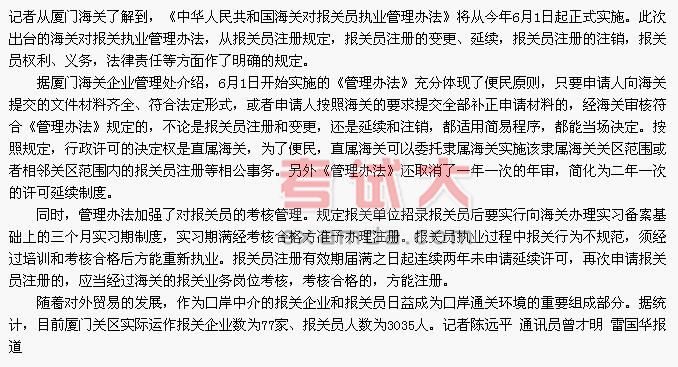 海关对报关员执业管理办法6月起正式实施