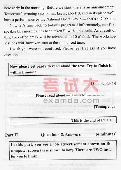 高等学校英语应用能力考试(口试)样题2录音文字材料(4)