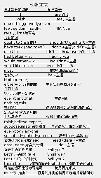 3) 陈述部分用 no, nothing, nobody, never, few, seldom, hardly, rarely, little等否定含义的词时,疑问部分用肯定含义。