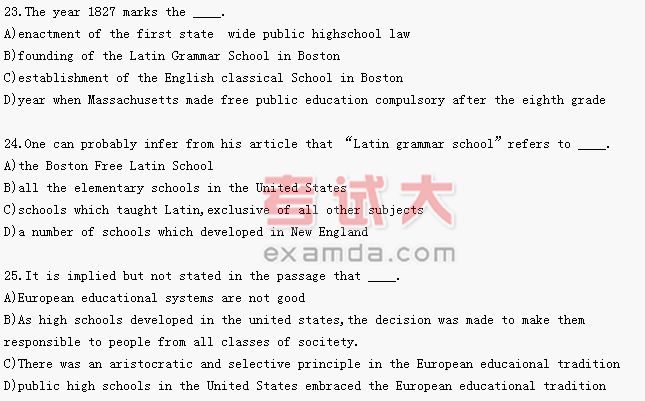 The public high school had its origin in Massachusetts in 1821 when the English Classical School was established in Boston.In 1827,the state enacted(制定)the first statewide public highschool law in the United States.By 1840,there were perhaps a dozen public high schools in Massachusetts and many in other eastern states by 1850,they could also be found in many other states.Just as the curriculum of the academy grew out of that of the Latin grammar school,the curriculum of the public high school developed out of that of the academy.The public high school in the United States is a repudiation(推翻) of the aristocratic(贵族的)and selective principle of the European educational tradition.Since 1890,enrollments( 入学)in secondary schools,mainly public high schools,have practically doubled in this country every ten years.