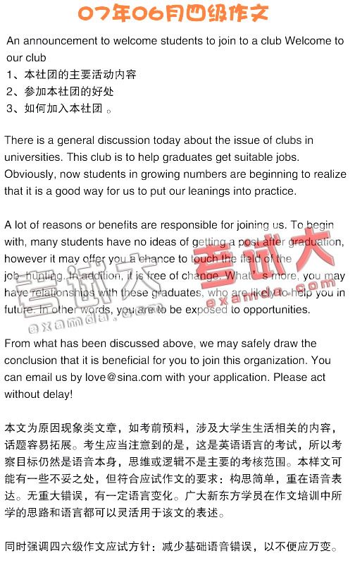 2007年6月23日大学英语四级作文范文