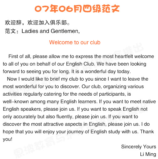 2007年6月23日英语四级作文范文