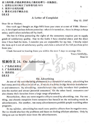 2008王长喜四级英语预测试卷之预测作文24篇(十二)