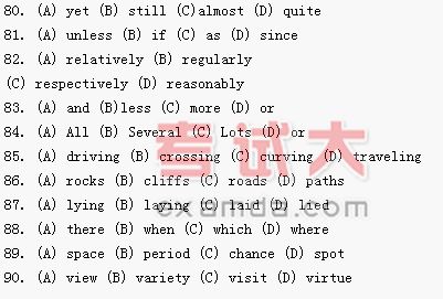 Directions: There are 20 blanks in the following passage. For each blank there are four choices marked (A), (B), (C) and (D) on the right side of the paper. You should choose the ONE that best fits into the passage. Then mark the corresponding letter on the Answer Sheet with a single line through the centre.