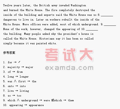The white House began to be built in 1792, but it was not completed until ten years later. Every American president lived in it except for George Washington, although he did have a 1.________ majority part in designing it. 2.________