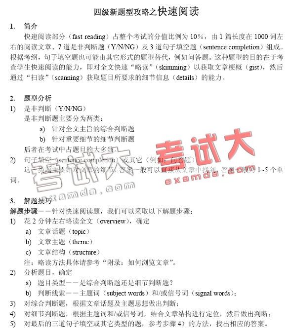 英语四级新题型攻略之快速阅读