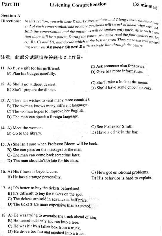 2006年12月23日英语四级答案