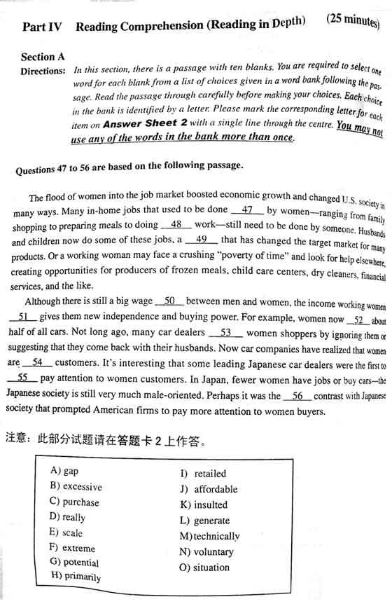 12月23日大学英语考试四级全真试卷(A)(4)