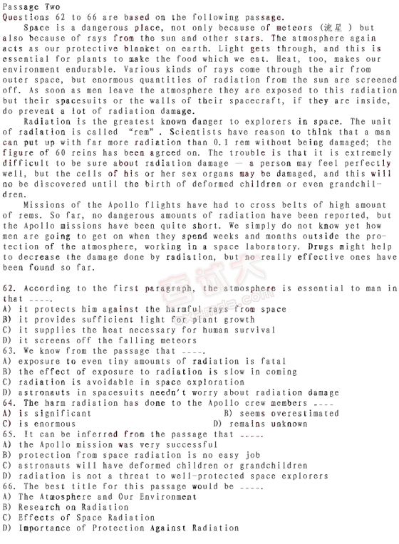 2006年12月英语四级模拟试题(含答案及详细解析)(7)