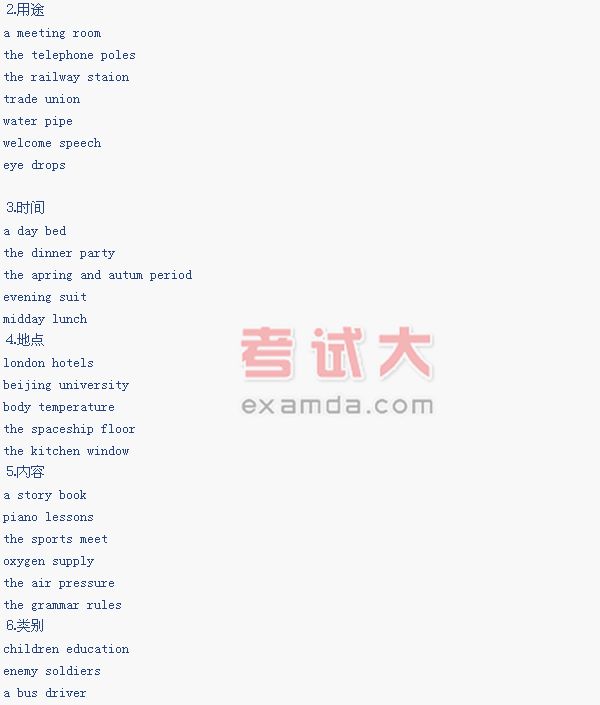 作定语的名词往往是说明其中名词的材料、用途、时间、地点、内容、类别等。