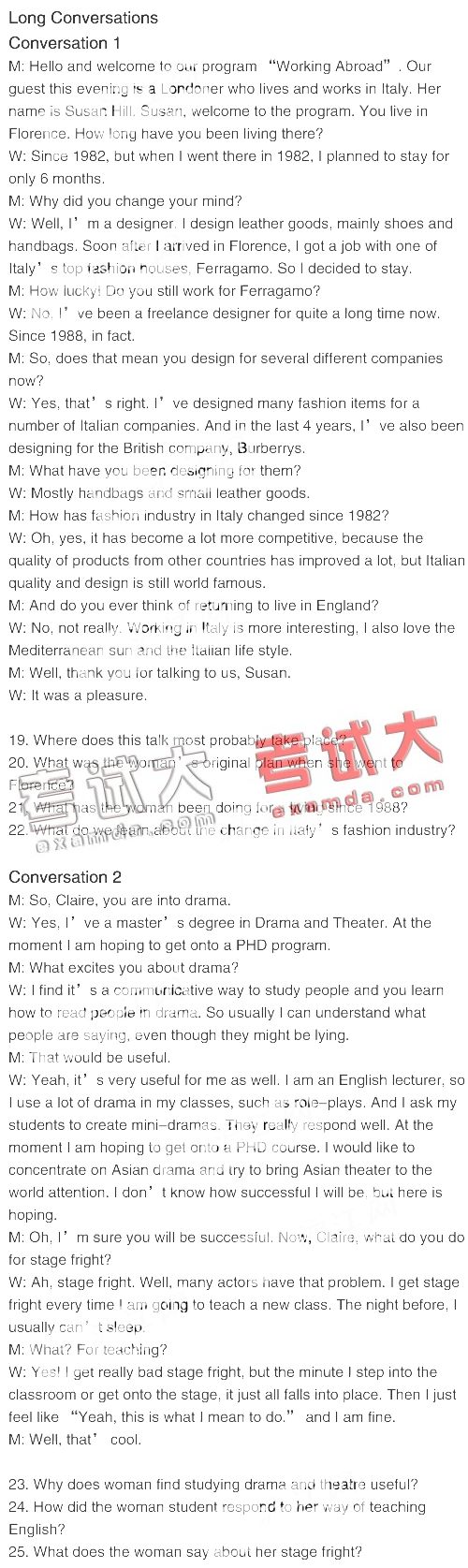 2007年12月22日六级听力原文—昂立版(2)
