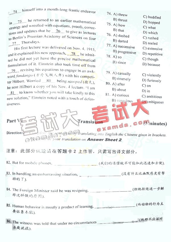 2007年12月22日英语六级试题A卷(12)