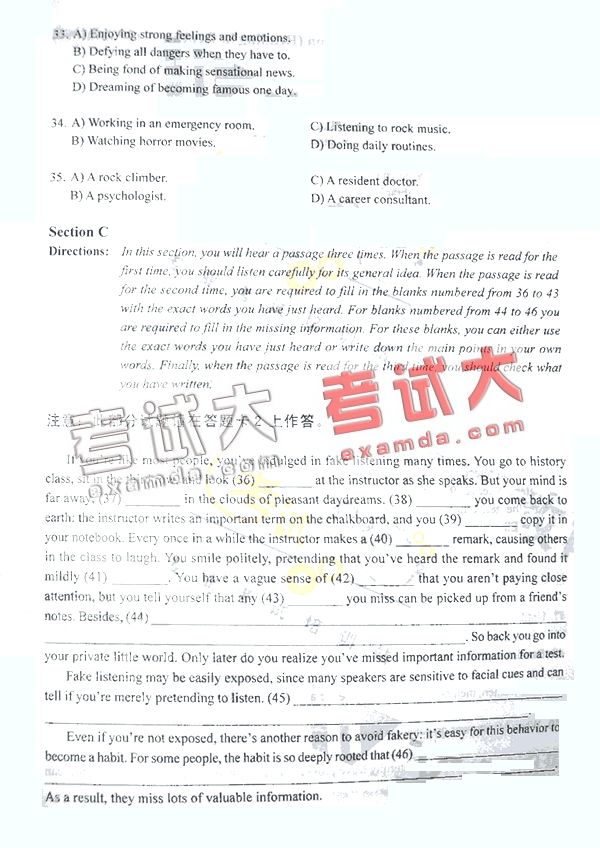 2007年12月22日英语六级试题A卷(7)