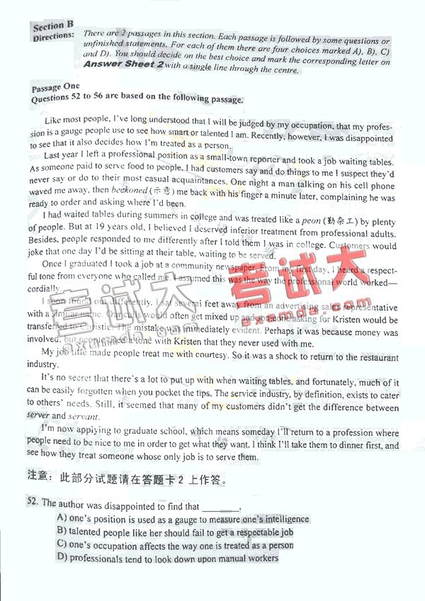2007年12月22日英语六级试题A卷(9)