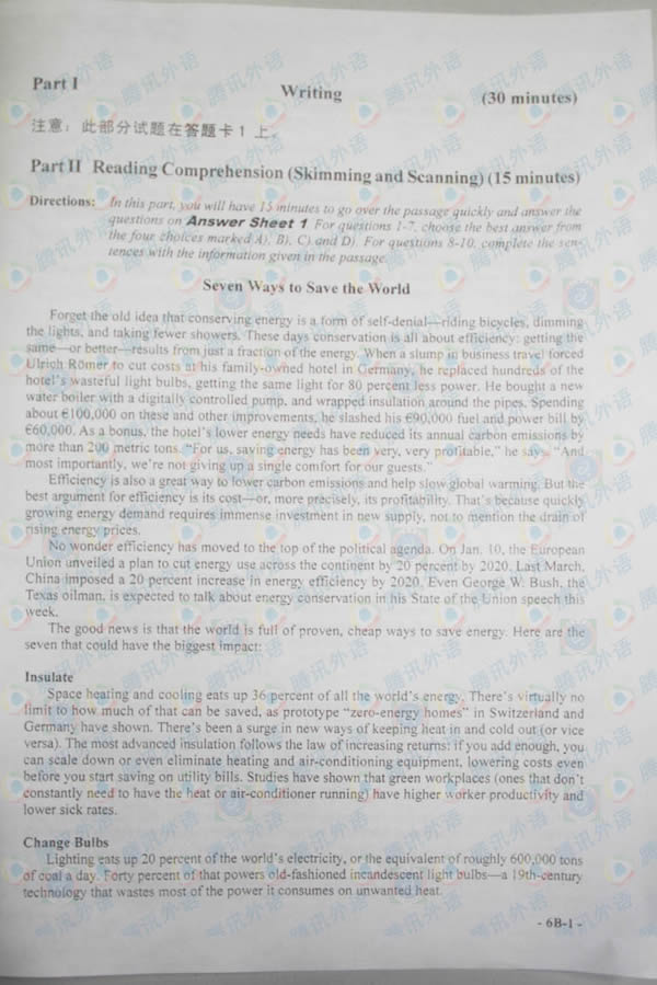 2007年12月22日英语六级试题B卷(腾讯版)