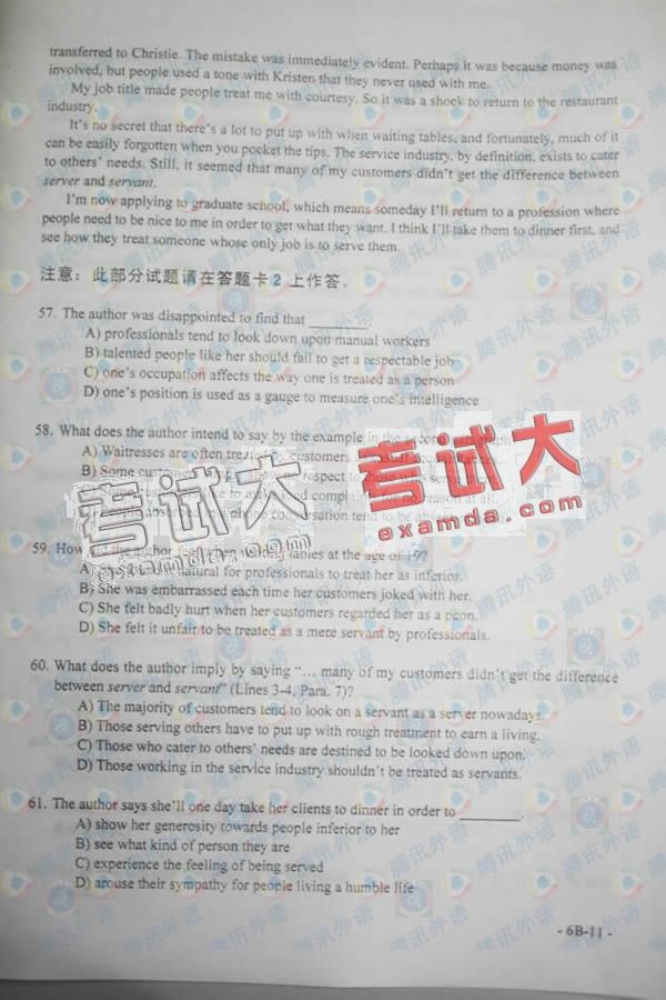 2007年12月22日英语六级试题B卷(腾讯版)(11)