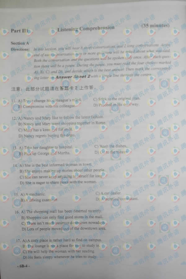 2007年12月22日英语六级试题B卷(腾讯版)(4)