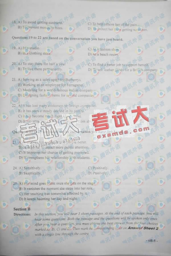 2007年12月22日英语六级试题B卷(腾讯版)(5)