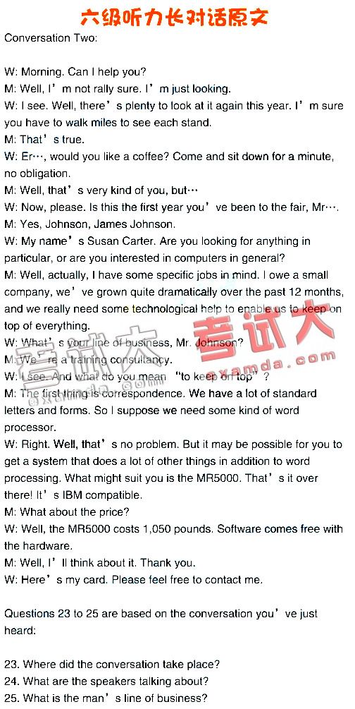 07年6月六级听力长对话和篇章听力原文(2)