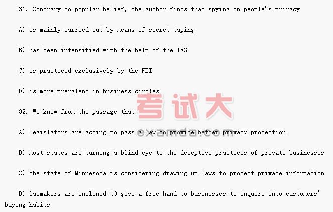 The legislators lean toward letting business people track our financial habits virtually at will.As an example of what's going on, consider U.S. Bancorp, which was recently sued for deceptive practices by the state of Minnesota. According to the lawsuit, the bank supplied a telemarketer called MemberWorks with sensitive customer data such as names,, ph'one numbers, bank-account and credit-card numbers, Social Security numbers, account balances and credit limits.With these customer lists in hand, MemberWorks started dialing for dollars - selling dental plans, videogames, computer software and other products and services.
