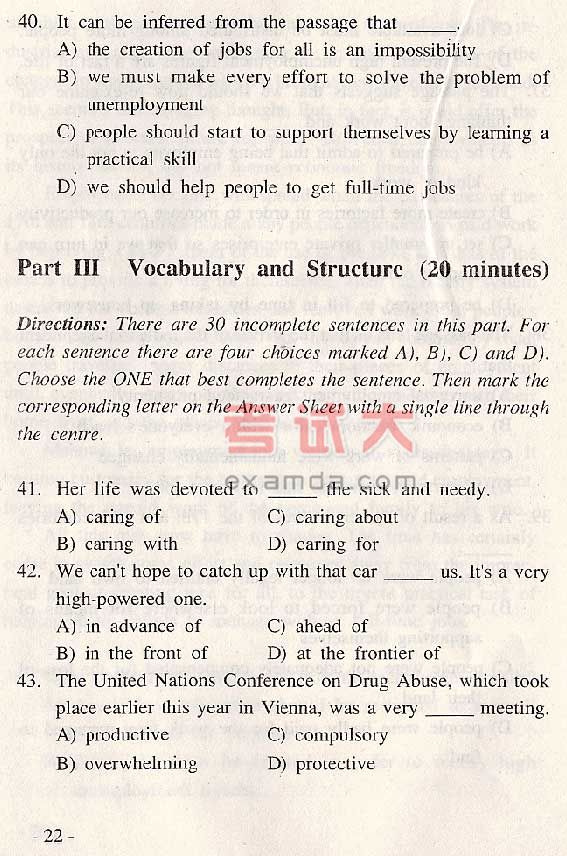 全国大学英语六级考试样题(16)